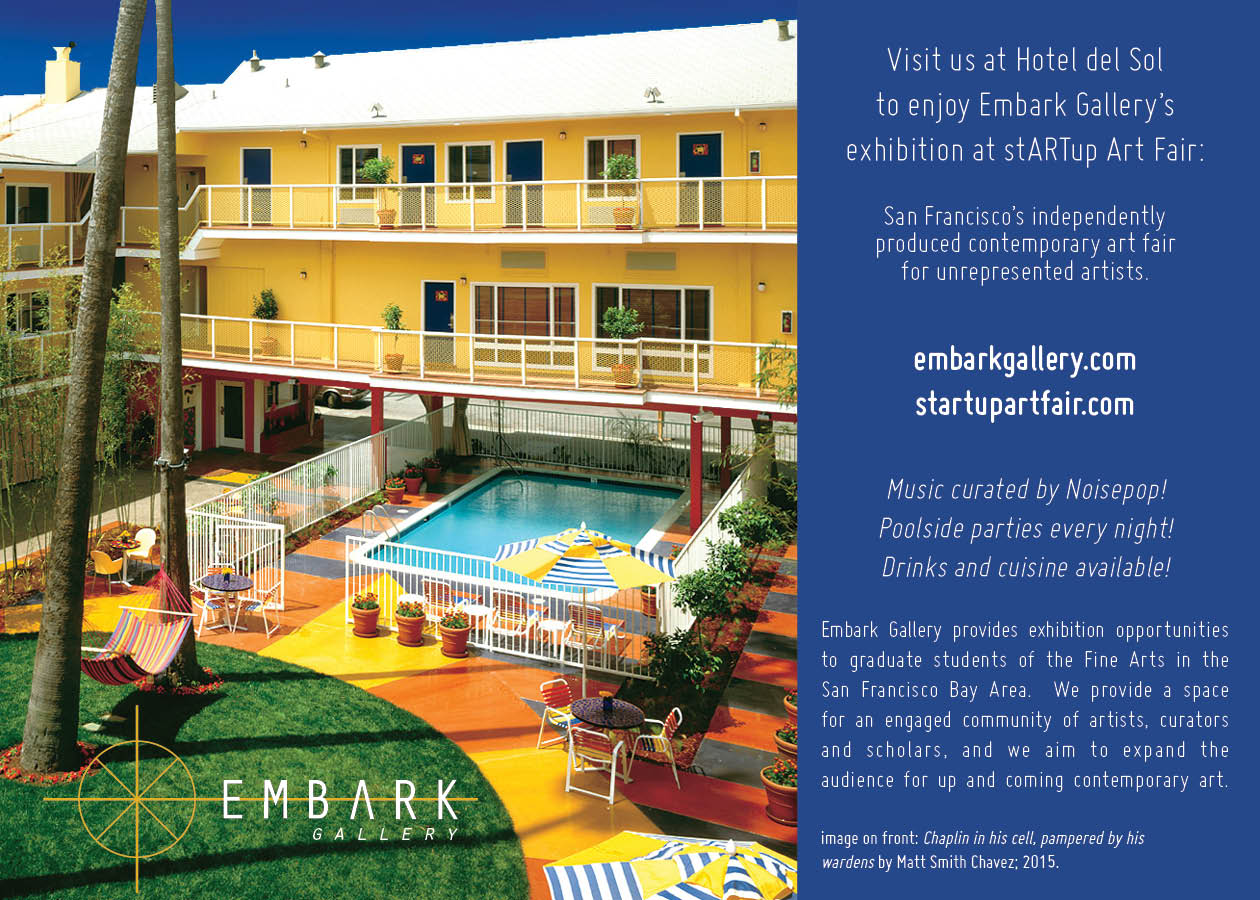 She was right, and her enlarged photos and wall drawings get their own corner of the group show that opened Friday at Fort Mason. The show’s theme, “Embark,” may not be original, but Embark Gallery’s mission is so refreshingly obvious that it’s a wonder no curator or academic has thought of it before — pick an all-star team of art grad students and throw them together for a monthlong exhibition. Then do it all over again with a new theme, six times a year.